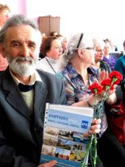 В качестве подарка торжественно вручили книгу и цветы ветеранам и почетным жителям города Кириши.