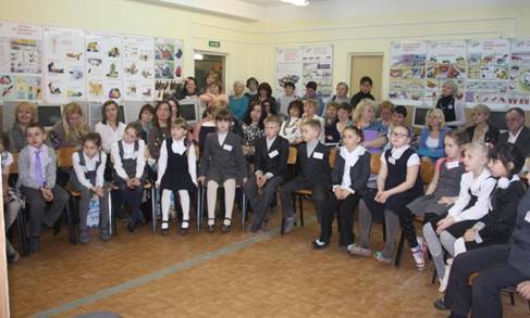 дети перед торжественным вручением книги и цветов
